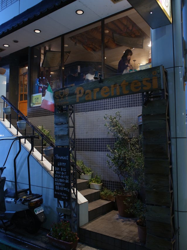 上がりにフルーツ牛乳を頂いた後、直ぐに同湯2階のイタリアン「Parentesi」へ。開業15年。拘 りの食材を眼の前に並べて強力に推してくる。安くはないし、こういったスタイルは好みが分かれ るかも知れない。 しかし、「出来ます」と、好みを聞いて食材に合わせた方法で食べさせてくれる。特に小麦に拘って いるピザが良かった。ワインも美味しく、ショウガのリキュールをジンジャエールで割った「ダブ ルジンジャー」という飲み物も良かった。