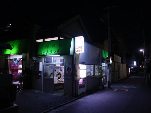 角は元消防署のような資材置き場があって、そこを曲がれば同湯の明かりが見える。