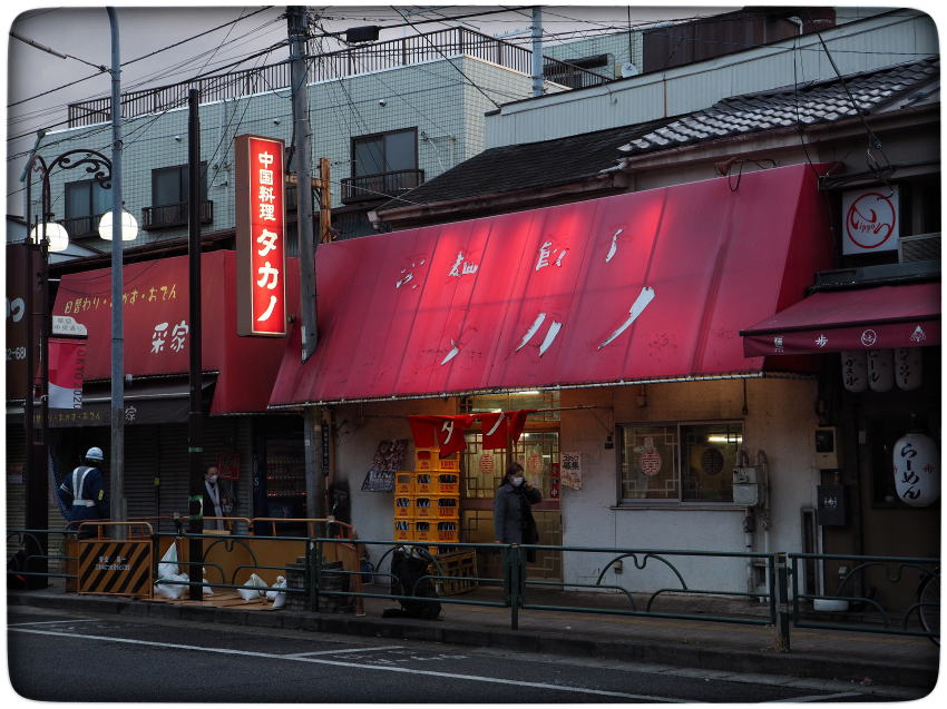 上がりは、小まめに喉を潤すようにとウィルス対策で持ち歩いているお茶で一服。夕飯は「中華料理タカノ」。最近までラーメンを350円で提供するとともに、24時間営業、年中無休だったという、なかなか気合の入ったラーメン屋。西井堀川の上に立ち並ぶ商店街ということで再建築が出来ないののか、そこだけ昭和時代の雰囲気が色濃く残っている。堀切を訪れるたびに気になる存在だ。