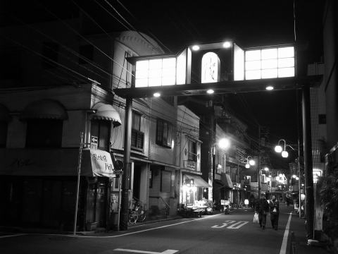 | 初音湯(台東区谷中) 2008.02.22 「よみせ通り」の中華屋・春木屋は、80歳位の夫婦がやっているボロ中華屋だった。 20:00入店、相客は居ない。婆がストーブの上に載った大きな薬缶で、お茶を淹れてくれる。懐かしい光景だ。 ビールが大瓶しかなかったので、紹興酒とソース焼そば。この際、味なんてどうでもいいと思った。イニシエに遭遇することができる。 存在そのものが貴重だ。 そして、初音湯。やはり戦前の銭湯だった。昭和7年築。油井型の煙突。レトロな銭湯 東京では珍しいセンター浴槽だ。 西湖からの逆さ富士を描いた早川師のペンキ絵もいい。戦前の古い銭湯だけど、同湯は折上げ格天井。折上げ部分が大振りなのが少し他と変わっている。 池もあって、瓦が載った塀の裏には檜皮が打ちつけられている。なかなか凝ったものだ。 金曜日の20:30から21:15に滞在。相客は10数人。適度に客が入っているのがいい。 今日は暖かい。厚手のPコートは持て余すほど。 先週に引き続き日暮里駅まで歩く。 |