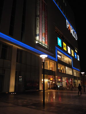 同湯はメインではない側の東口にある。正面にPARCOが入った公的セクターの新しい建物 が目立つ程度。どことなく辻堂駅を思い起こさせる新しさと閑散さがある。