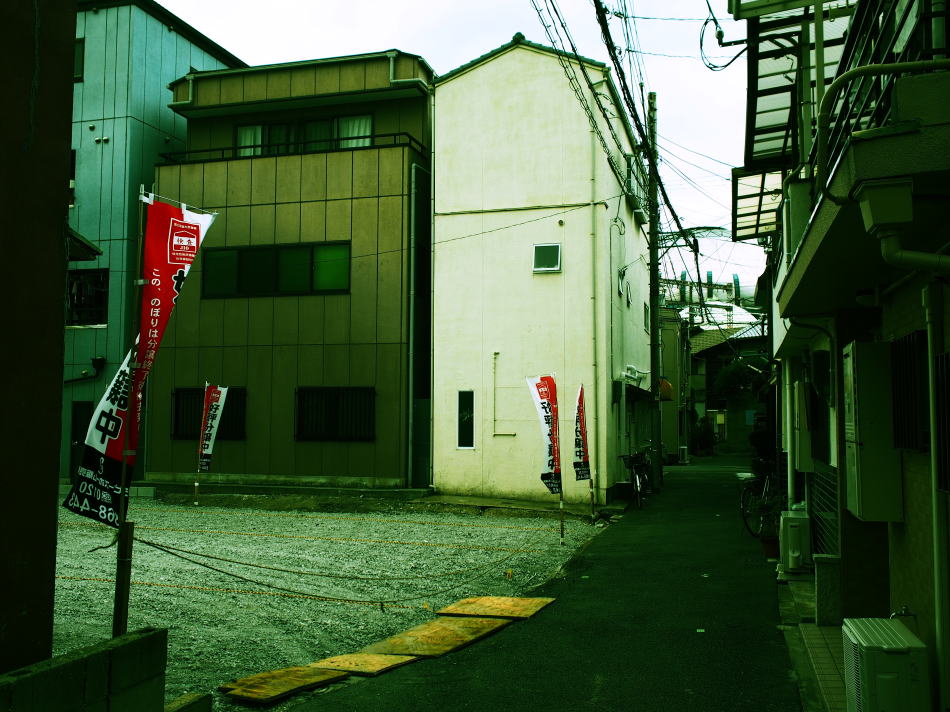 廃業からさほど時間が経っていなかったので行ってみると”好評分譲中”の旗がいくつもはためいていた。