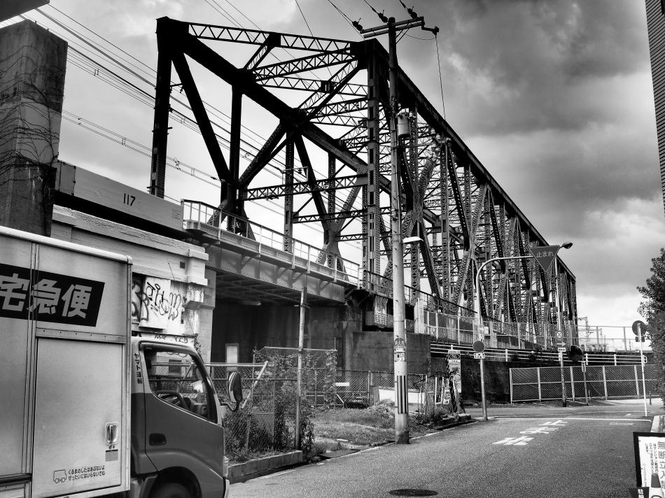 大阪環状線のこの橋、電車に乗っていて見ても、大正駅で降りて見ても気になる存在感がある