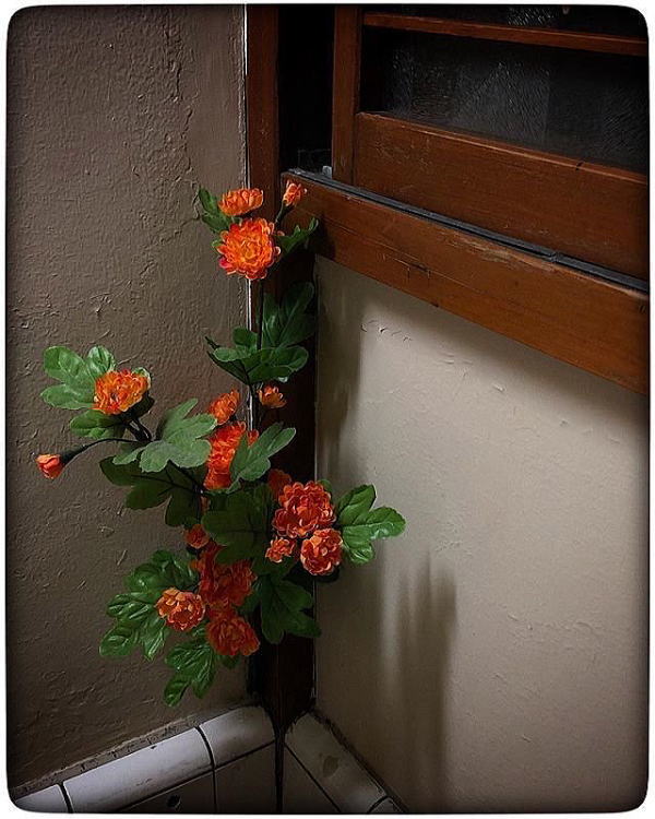 男女境には、綾瀬五丁目商店街が賑わってたことを窺わせる、“新技術を誇る店さとう理容所”、“心も一緒に買える技術の店ナシヨナルショップ十文字電気”など、食料品店、衣料品店を含め5軒の店のコピーが並ぶ。あなアナログの体重計はTANAKA。その他、ベンチが置かれている程度で、余計なものは一切置かれていない。