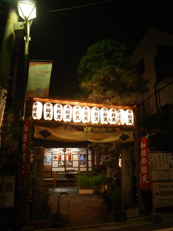 暗渠となった川跡の道に向かって緩やかな傾斜を進み、そこを通過すると坂を登り返す。しばらく 進むと”和田帝釈天通り”と小さな商店街に出る。総菜屋、牛乳屋、金魚屋などが残っている。小 さいながらもいい雰囲気の商店街。同湯はそんな一角にある。