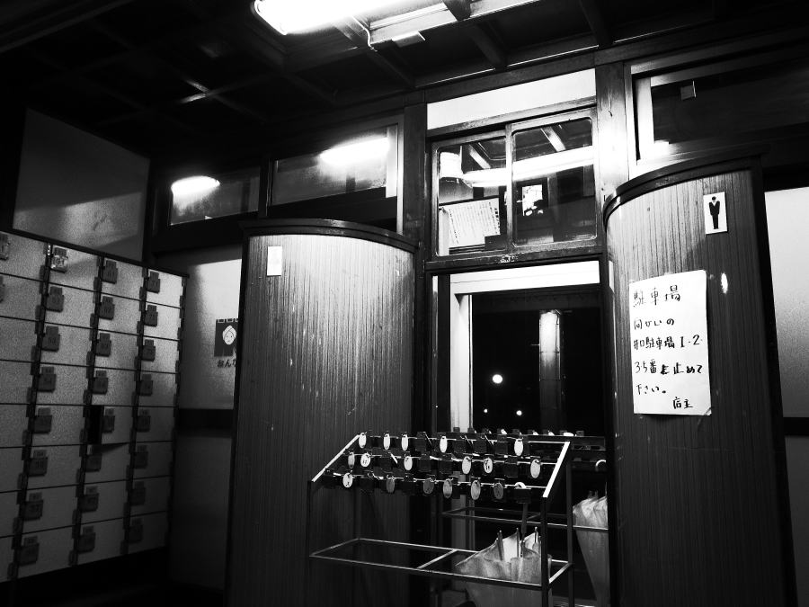 番台への扉を開ければ、前面がカーブした木目プリント合板を張った高さのある番台に女将さんが 座っている。