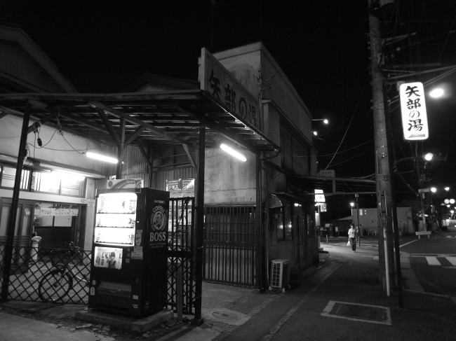 夕御飯を食べに駅へ向かう。その前に矢部の湯でひとっ風呂。