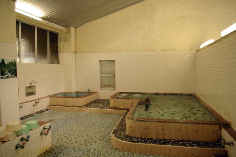 浴室はコンクリ製。幅は2間半、奥行きは3間半。天井は高さ2間程度の船底天井にそれなりに大きな長方形の湯気抜きがある。東京銭湯の2段型に少し似ている。