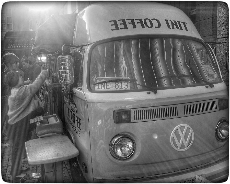 国連大学前。ファーマーズマーケットでの移動カフェ。