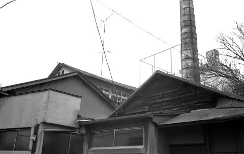 去年、秋、廃業した「亀の湯(品川区中延)」。建物はまだそのまま残っていた。表のガラス戸の内側にベニヤ板が打ちつけられている。