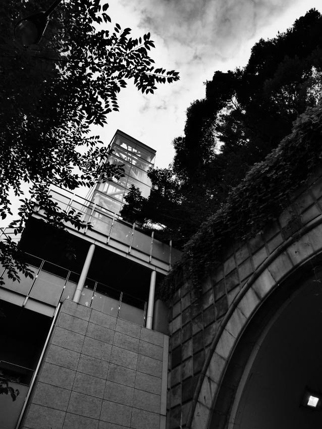 愛宕山へは、何とエレベータで昇ることが出来る。