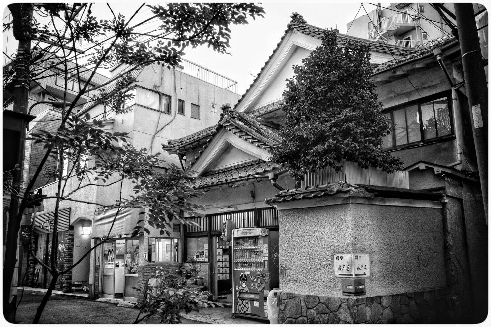神楽坂の通りから見番横丁へ入り、料亭などがある石畳の細道を抜け石段を降れば同湯の脇に出る。類い稀な秀逸なロケーション銭湯だ。そしてこれほどの風情。加えて同湯は未だに薪でお湯を沸かしている。斜面に屹立するコンクリートの煙突も健在だ。