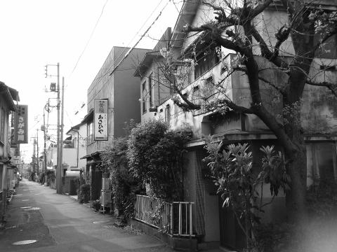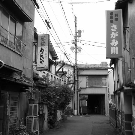 | 厚木(厚木市寿町) 2008.04.12 厚木の花街には娼妓は居なかったというが、花街の跡にはそれらしい雰囲気が微かに残る。 町は南北に元町、東町、厚木町を通る街道沿いに栄えた。寿町はその東側に位置し、明治後期頃から付近の田んぼが埋立てられ、拓かれていった。 旅館、料理屋、芸妓置屋および寄席などがある厚木花柳界の中心として繁栄していく。 |