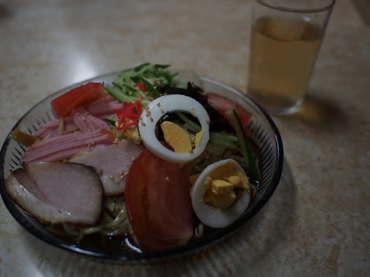 岡山に着き、駅前大衆食堂の「ことぶき」で”冷麺”という名の冷やし中華を頂く。器、盛り付け、 味ともに懐かしい感じがするもので満足する。ハムの替わりのチャーシューが美味しかった。