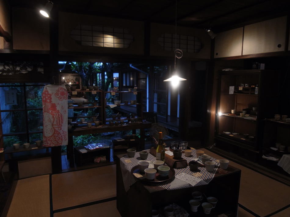 その後は、北長瀬の繊維商社街やら、偶然手にしたフライヤーで旧津山街道沿いの「油亀」という ギャラリーに行く。油亀は、明治初期の薪炭屋の建物をそのままギャラリーにして、今回は「蕎麦 猪口」ばかりを並べている。蕎麦猪口を買い求めるとともに、中庭に向かう縁側で1時間ほども、 蚊遣りの匂いを感じながら雨を眺めていた。