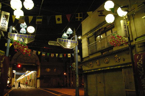 ![]() 三吉橋通り商店街。先のアーケードは横浜橋商店街。 |