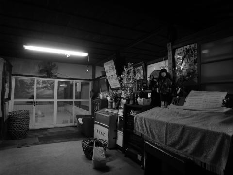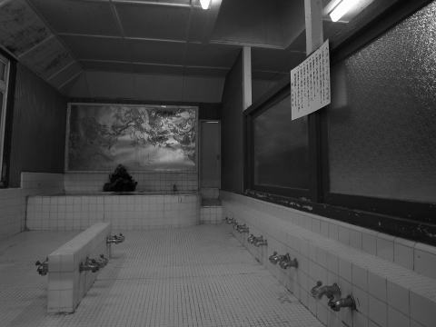 大間々の銭湯の値段は360円。ご高齢ではあるけど、髪をしっかりとセットし、黒を基調と しながらも華やかな模様の入ったシックな装いの方だった。外で写真を撮っていたら電気を灯 して下さったりと、珍客にも心配りを欠かさない。