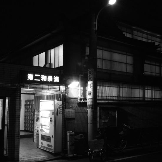 会社から帰宅はせずに東京駅22:00発の寝台特急・サンライズ瀬戸号に乗り岡山駅まで行く予 定。シャワー室の設備もある寝台列車だけど、旅の前哨戦として銭湯に浸かりたい。そして、 上がりも大衆居酒屋「魚三酒場」か、居酒屋通が愛する「浅七」で一杯やりたい。そんなこと を考えながら門前仲町の第二和泉湯に向かう。