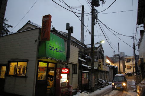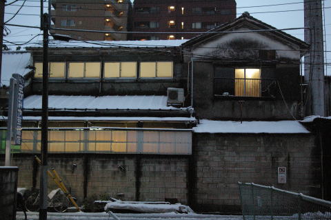 道路も拡幅されるらしく、木製ドアの、レトロなトイレの窓の外は雪景色の道路用拡幅用の空き地だった。