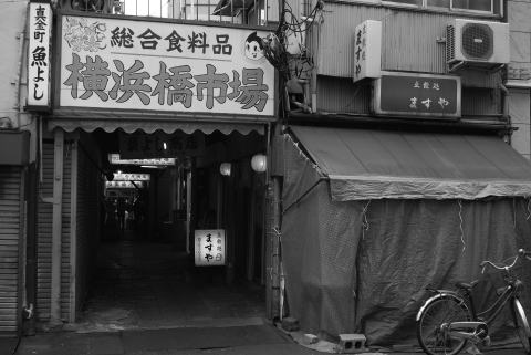 | 永楽湯/仲乃湯(横浜市南区永楽町/中村橋) 2008.11.24 阪東橋の名画座に休息を兼ねて「幻の光(是枝裕和/1995)」を見に出かける。宮本輝の原作に合わせ関西を舞台としてはいるものの鶴見線国道駅のガード下のレトロな風景で映画がスタートしたのには驚いた。 気鋭の若手監督の初の劇場公開作品だった。小生と同じく国道駅のガード下の風景が製作欲を刺激する思い入れのあるものだったのだろう。最新作の「歩いても歩いても」は、もったいなかったけど軽い頭痛で集中力が続かず30分程で出る。 映画館の外は、気温が下がって冷たい雨まで降っていた。そんな中、旧永眞カフェー街跡を散策する。 永楽湯を経由して仲乃湯の前まで行ったけど、風邪を引きそうなのと、内藤酒店が開いてなかったのでパスする。 相変わらず八幡町通り商店街のシャビーな風景はいい。今日は祝日ではあるものの月曜日。初めて、外観がボロの「池田惣菜店」が営業中の店だと知る。教えて頂いた三吉橋の袂の「フライ屋」もなかなかの佇まい。しかし、気力ある時に取っておくことにした。 |