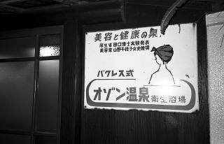 そう、「バクレス式オゾン温泉 衛生浴場」なるホーロー看板。(脱衣所には山野愛