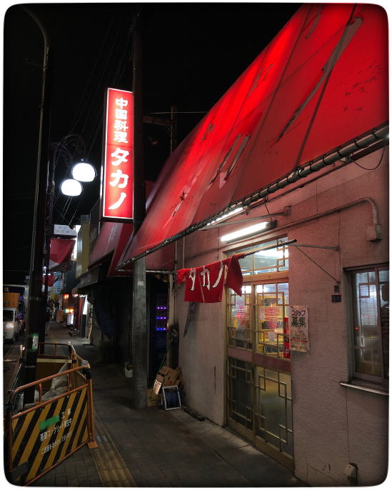 上がりは、小まめに喉を潤すようにとウィルス対策で持ち歩いているお茶で一服。夕飯は「中華料理タカノ」。最近までラーメンを350円で提供するとともに、24時間営業、年中無休だったという、なかなか気合の入ったラーメン屋。西井堀川の上に立ち並ぶ商店街ということで再建築が出来ないののか、そこだけ昭和時代の雰囲気が色濃く残っている。堀切を訪れるたびに気になる存在だ。