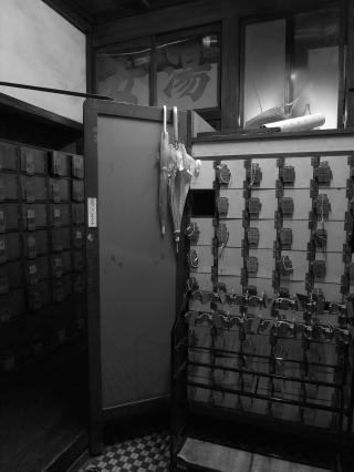 番台は木組のどっしりとしたもの。相方が2人分820円の風呂銭を差し出す。番台中は、女 将とその孫だろうか、少しの窮屈さも無い感じで収まっている。微笑ましくも自然な感じ。し かし、ゲームなのか、2人とも別々の液晶モニターを見て、何やら操作しているのが現代風で もある。