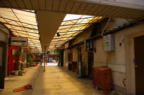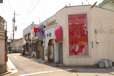![]() 現役の風俗街でもある。 この写真を撮っていると、向かいの店の人から声が掛かる。 風俗嬢が表に出てきてタバコをすっていたりと、長閑な光景があった。 |
