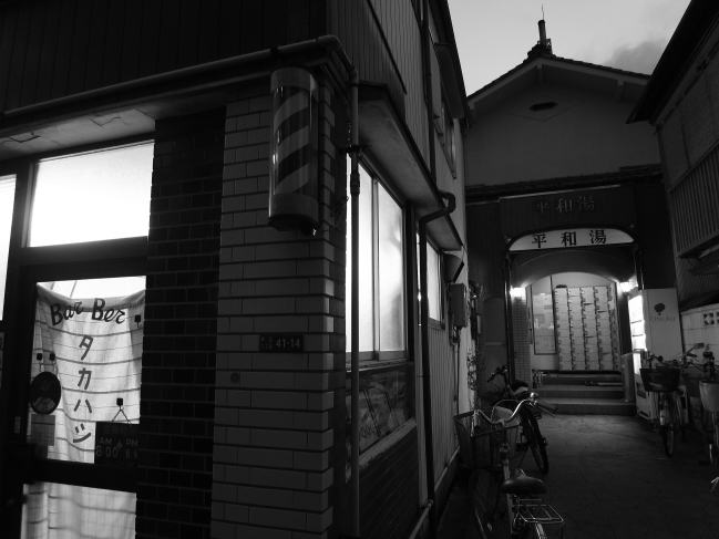 差出人: Masayuki Nakamura [masa-nakamura@mpd.biglobe.ne.jp] 今日(7/2)は、「平和湯(北区神谷)」に行ってきました。 東十条駅(京浜東北線)から、1.2キロ、15分くらいです。 最寄り駅は王子神谷駅(東京メトロ南北線)で、こちらからは0.8キロくらいです。 最近使う機会がなくなった折り畳み式自転車のトレンクルを中古屋に売却したり、節電対策と して8日営業日に増えた夏休みの計画を立てて過ごす。今年の夏は大阪と京都を拠点にして、 関西の郷愁銭湯を探索しようと画策している。 さて、平和湯。環状7号線を荒川方向に歩き、新幹線や京浜東北線を渡って、しばらくして北 に進路を変更する。東京メトロ・南北線が通る前は、それなりに不便だったと思われる地域。 東京人でもあまりイメージが湧かないエリアではないだろうか。 印刷系の町工場などに混じり、鹿島建設の「書庫」なる白亜の建物があった。ゼネコンの名門 鹿島。施工した膨大な建物の建築図面が保管されているのか。。。そんなことを想像して少し興 奮した。 さらに隣湯のビル銭「藤の湯」をチェックして、暮れなずむ頃、平和湯に着いた。油井型の煙 突が夕空に浮かんでいる。表通りからY字路を少し入って、理髪店と美容院が露払いをする花 道の奥にある。 ”平和”という屋号から創業は戦後なんだろう。経営を引き継いで50年以上、その後火災や中 普請もあり、建物の部分部分で建築年代は区々としている。 脱衣所棟はモルタルの簡素な建物。付属する小さなエントランスには、松竹アルミ板鍵の下足 箱がさほど多くない数並んでいる。