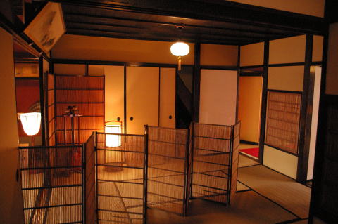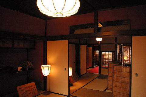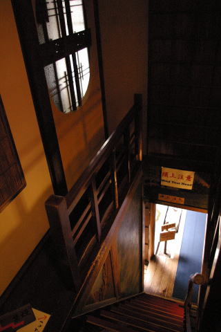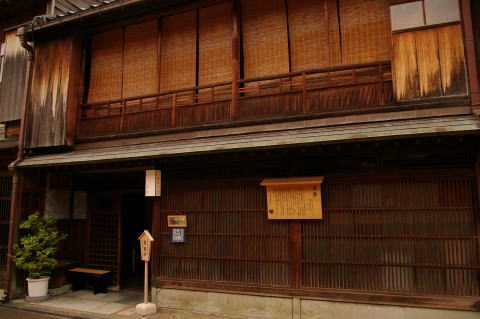金沢・ひがし茶屋街/志摩(石川県金沢市) H18.8.23 「志摩」は、文政三年(1820)に建てられたお茶屋の建物で、これまで手を加えることなく、江戸時代そのままに残っており、学術的にも貴重な文化遺産として高く評価されている。 お茶屋は、2階を客間とし、押し入れや物入れ等は作らず、あくまでも遊興を主体とした粋な造りとなっている。 出所:志摩のHPより。