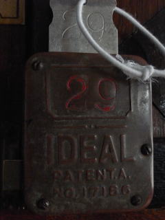 ロッカーは外壁にあって焦げ茶色のオール木製ロッカー。錠は「IDEAL」。男女境の古い鏡