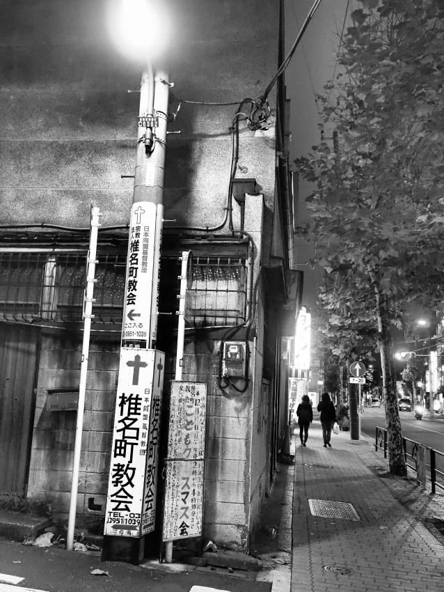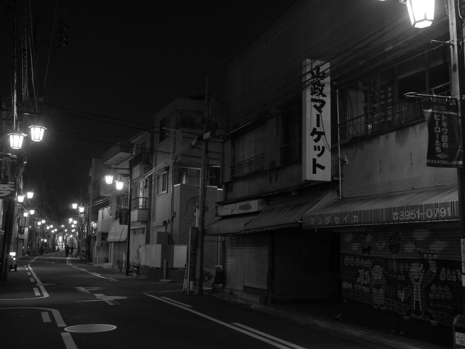 上がりは夜の南長崎の街を散策する。トキワ荘跡地、中華料理の松葉、山政マーケット、味楽百貨店など楽しい建物が多く残っている。