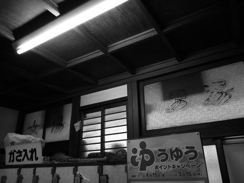 上がりは外光が入る脱衣所でビックル120円を頂いた。東京の銭湯で脱衣所に外光が入る銭湯は貴 重だ。外壁側にロッカーが設置されていたり、前庭を潰したりして、前からも横からも自然光が入 るという銭湯は案外に少ない。