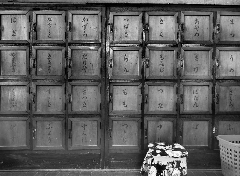 (追伸)ロッカーの扉に書かれていた花の名前。はぎ、やまぶき、しのぶ、ぴーす、なでしこ、ききよう、すすき、ふよう、かずら、だりや、さつき、すみれ、つばき、らん、もも、つきじ、きく、もみじ、つた、ゆり、あやめ、きり、ぼたん、ばら、まつ、うめ、さくら、ふじ。