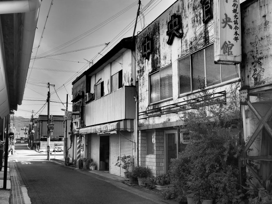 あがりは、向かいの廃業旅館「中央館」の飲食部なのか、「中央館 かまた」という暖簾を掛けた居酒屋でビールでも飲みたかったけど、岬の向こうの湯浅の栖原地区の町並みが気になっていた。ぐっとこらえて栖原に向かう。