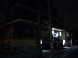 古くてでかいマンションらしいけど、コインランドリー以外、明かりが点いていない・・・。
