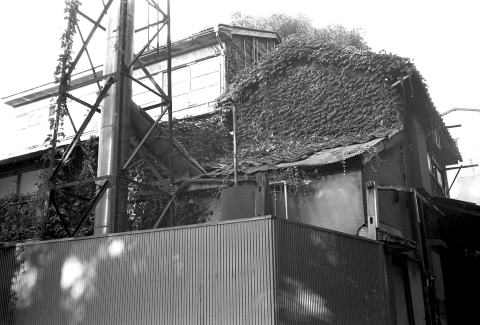釜場の木製の戸は、ガムテープで補修されて満身創痍といった状態。