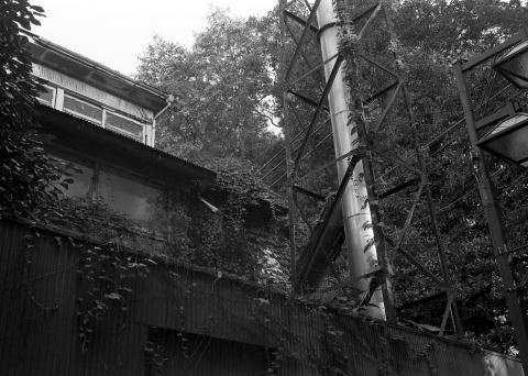 外側の窓の一部もツタが伸びて、緑になっている。