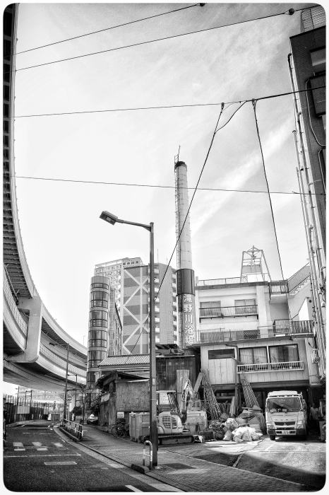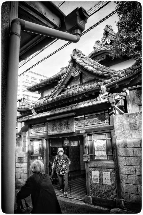 西巣鴨駅を降りて旧中山道北側の戦災非焼失地域を散歩する。目にするのは隣湯の滝野川浴場のコンクリートの煙突。マンション下駄ばきの薪焚きの銭湯で、浴室内に金魚が泳ぐリアルな池が設えられているかなり特徴的な銭湯だ。ビル銭湯だけど古い銭湯のように落ち着く好きな銭湯だ。