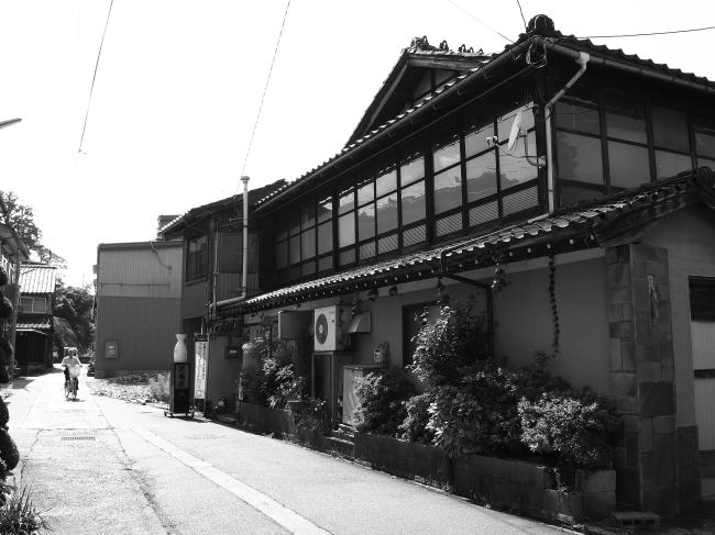 自転車で走る親爺の右側に趣きある城端ラジウム温泉があった。