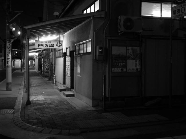 新潟県の浴場組合は立派なHPを持っている。そのHPによれば、門の湯は22:30までの営 業。しかし、夕方に電話すると、案の定、閉店の時刻は22:00繰り上がっている。時間も ないので、新潟駅からはタクシーで急行する。
