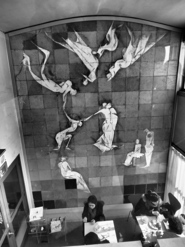 ![]() 中3階の旧学芸員室から小さな喫茶室を見下ろす。 |