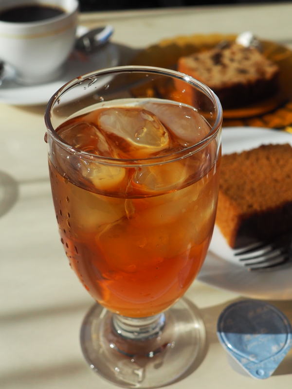 ![]() アールグレイのアイスティーとカステラで休憩。 |