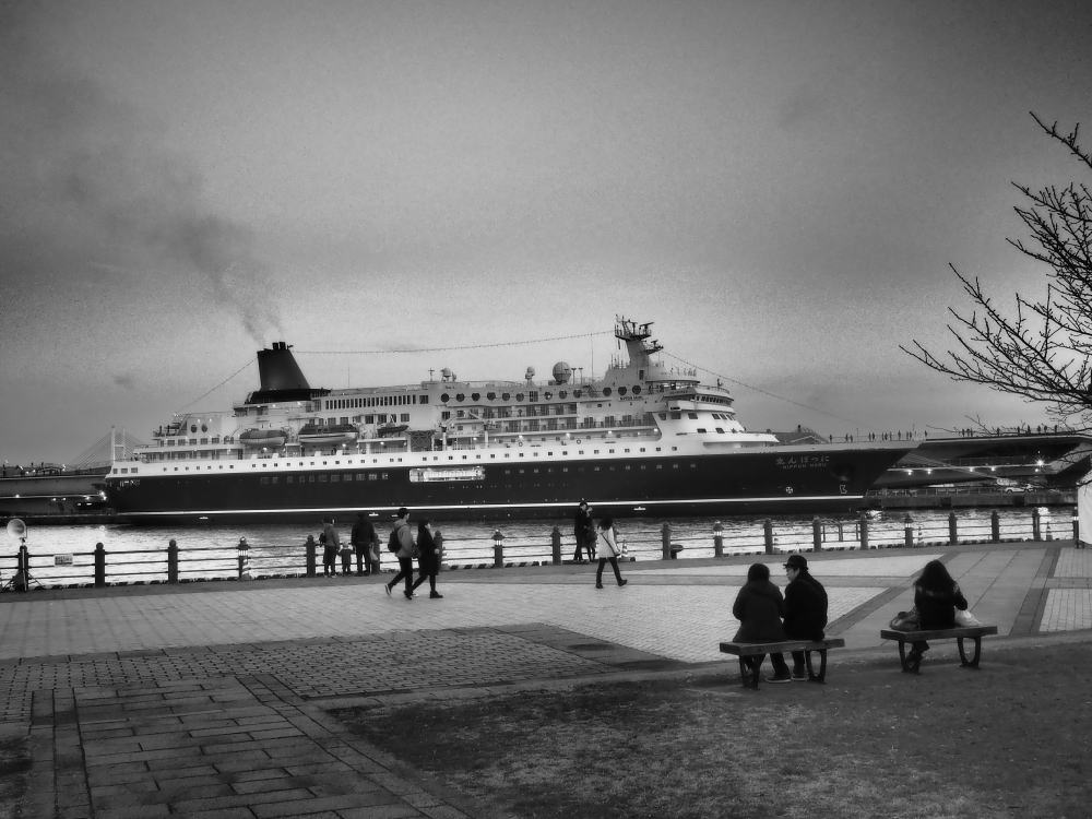 ![]() 鎌倉から横浜赤レンガ倉庫の今昔きもの市へ。 tentoさんの店で、初めての”繭”の質感を感じさせると思っている結城紬の質素な着物を一着買った。 商船三井のクルーズ船「にっぽん丸」。17:00、長い三回の出港の汽笛を鳴らしバックする形で出港して行った。 |
