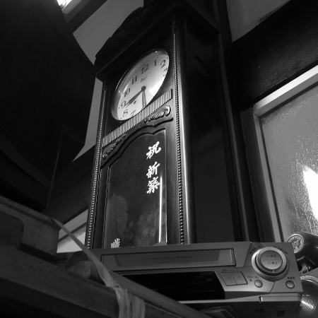 脱衣所は幅3間弱、奥行3間程度。天井は材はさほどのものではないけど、見事な折り上げ格 天井。そして、天井には古風な天井扇。大黒柱には黒柱時計がゆっくりと振り子を揺らしてい る。