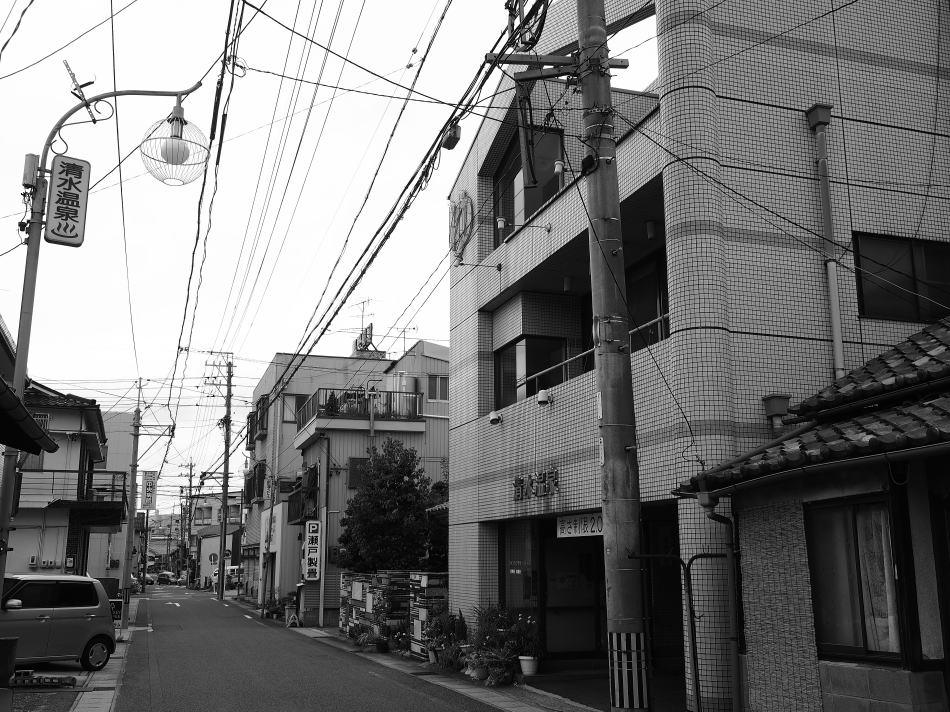 その目抜き通り。今はビル銭湯に替っているものの、花街の銭湯が残っている。