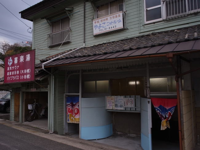 上がりは、海峡の寒風が吹き、予報にもない雨にも降られながら旧赤線跡の千歳湯(定休)、旧福富 湯(廃業)、さらに、えびす湯、霧島湯を見て回る。
