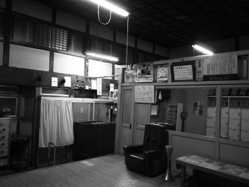 母屋からご近所さんに”行ってらっしゃい”と見送られながら、開店の15:30から3時間ほど番台 を務めるのが大女将の日課のようだ。ご高齢で風呂銭のやり取りにも難儀する感じだけど、1日の 何時間か、この番台で過ごすのが一番いいのだろう。
