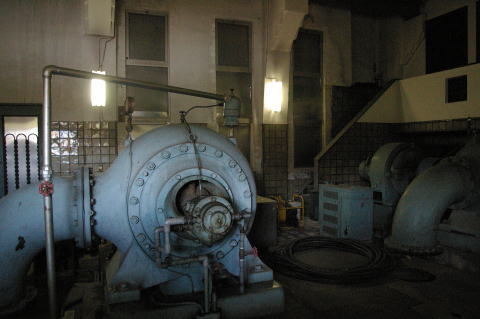 ![]() 第一ポンプ所(昭和8年) 昭和に入り需要増への対応として、配水池が増設された。 これは、自然流下ではなく、ポンプによる加圧配水方式が取られた。 |