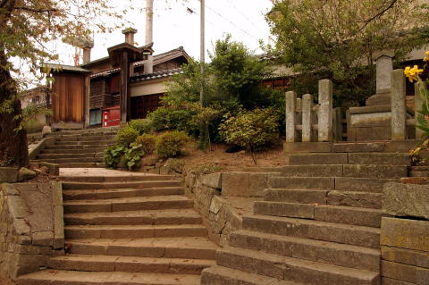 ![]() 西光寺境内。右の碑は大正15年のもの。 墓なのか、遊廓に係わるもののようだけど、 風化が進んで読み取れなかった。 |